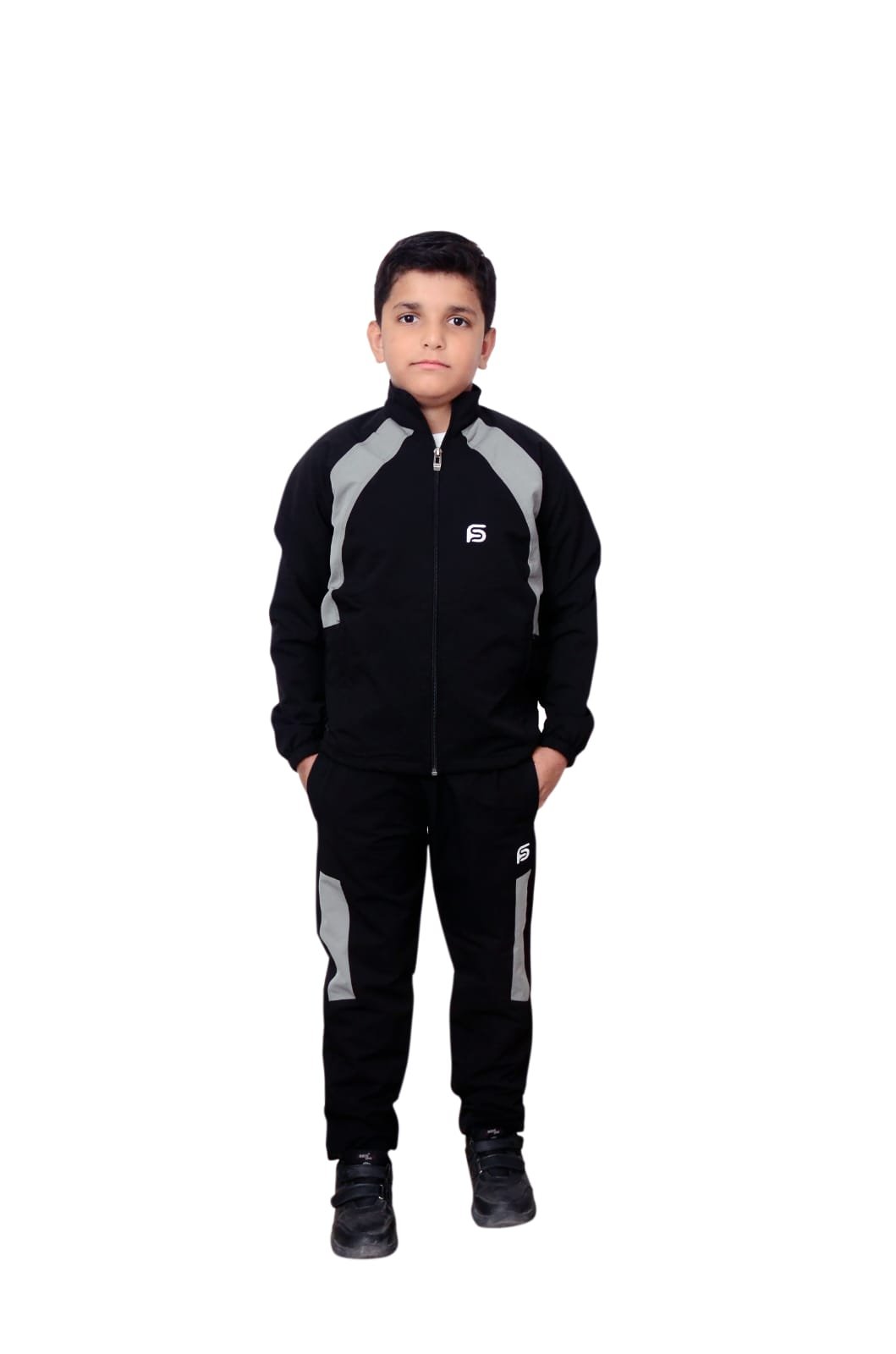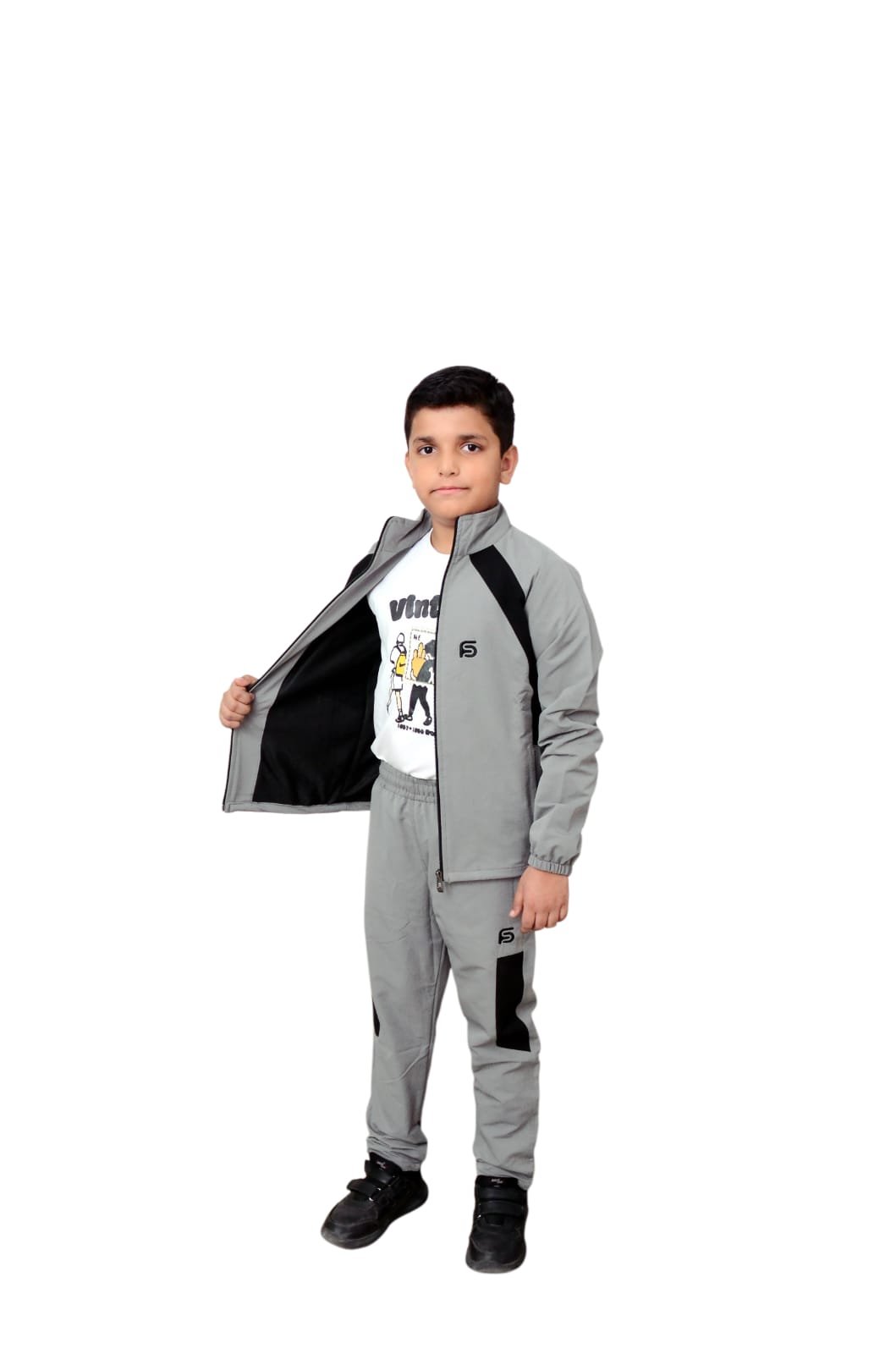 Upgrade your child’s activewear wardrobe with this stylish and comfortable Boys Sports Tracksuit Set. Designed for everyday comfort and sporty appeal, this set includes a full-sleeve zip-up jacket and matching track pants. Crafted from high-quality fabric, it offers a soft feel, excellent breathability, and long-lasting durability. The upper features a modern color-block design with contrast panels adds a trendy look, side pockets, and elastic cuffs for a secure fit.